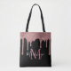 Chic sac fourre-tout noir et rose gold pailleté avec gouttes sur fond noir chic avec votre monogramme personnalisé et nom. Conçu par Cedar and String. Pour personnaliser davantage, veuillez cliquer sur le lien "personnaliser davantage" et utiliser l'outil de conception pour modifier le design. Si vous avez besoin d'aide ou d'articles assortis, veuillez nous contacter à cedarandstring@gmail.com