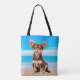 Tote Bag Chihuahua Chig assis sur la plage tropicale
