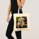 Un jeune chien chiot-eyed mignon de golden retriever dans un panier en osier parmi des fleurs dans un jardin. Ce sac fourre-tout à budget de coton est une idée enchanteresse de cadeau pour des doglovers. Un jeune chiot de Goldie de cutie photographié par Katho Menden. http://www.zazzle.com/kathom_photo