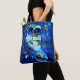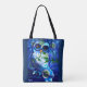 Tote Bag Chouette Abstraite lunaire bleu vert fleurs floral