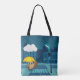 Tote Bag Chouette mignonne avec parapluie le jour de la plu