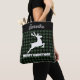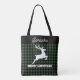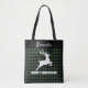 Tote Bag Christmas Green & Black Plaid Reindeer Custom Name