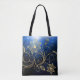 Tote Bag Ciel nocturne étoilé, Fleurs de vigne d'or Monogra