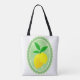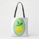 Quand la vie vous donne des citrons...allez faire du shopping ! Lumineux et gais, cette branche de citron sur un sac fourre-tout arrière - plan vert mini floral vous fera sourire !