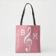 Tote Bag Clé G rose monogrammée pour elle / notes de musiqu