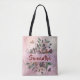 Ce sac fourre-tout comporte une conception florale renversante, sur un arrière - plan rosâtre, avec l'espace pour une expression nommée ou courte à l'intérieur.