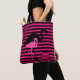 Bandes roses et noires vibrantes avec silhouette flamingo cool sur fourre-tout monogrammed.