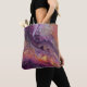 This vibrant tote bag features a swirling marbled fluid art in deep purples, gold and orange with cellular lace textures - evokes cosmic nebulae, molten metal and organic, vein-like patterns.