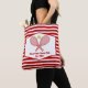 Cet élégant sac fourre-tout de club de campagne moderne comprend des raquettes de tennis et une balle au-dessus de votre nom d'équipe de tennis et date établie. Cadeaux rayés rouges et blancs pour vos joueurs de tennis et membres du club de pays.