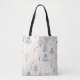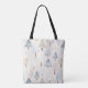 Tote Bag Cream Beige Blue Christmas Trees