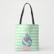 Cute et moderne vert menthe rayé personnalisé fourre-tout avec crème glacée blanche à la menthe et cerise sur le dessus.