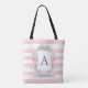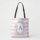 Ce beau sac fourre-tout comporte une crête d'aquarelle avec votre initiale, et l'aquarelle à la mode fleurit l'entourant. Les rayures roses d'aquarelle remplissent arrière - plan. Nous avons employé l'art de LABFcreations.