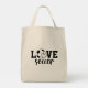 The reverse side keeps it classic with a bold, modern "LOVE SOCCER" graphic, featuring a soccer ball and a heart icon. Whether you're carrying your cleats to practice, grocery shopping, or heading to the stadium, this personalized tote bag is the perfect blend of humor and fandom.