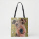 Tote Bag Cute Airedale Terrier et Motif de fleurs vertes