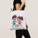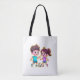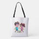 Tote Bag Cute Cartoon Boy and Girl Playing Soccer Together