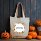 Sac fourre-tout montre une couronne circulaire de personnages mignons et colorés, y compris les fantômes, chauve-souris, araignée, citrouille, chat noir, et casquette sorcier. Personnalisez ou customisez le nom au centre du cercle, qui est blanc. Pour les adultes et les enfants, pour le shopping, l'école, Halloween, tricoter ou traiter des bonbons, et plus encore. Sac écologique et réutilisable.