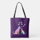Tote Bag Cute Rainbow Cat and Dog Silhouette Love Purple To