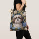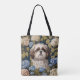 Tote Bag Cute Shih Tzu Chiot Blue hydrangea fleurs