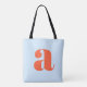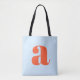 Tote Bag Cute Soft Blue Orange Monogram Retro Lettering