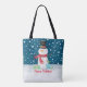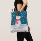 A cute snowman on a snowy night decorates this Christmas tote bag with the words Happy Holidays. Personalize it by Changing the text to whatever you wish. Designed for you by Blackberry Boulevard.