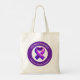 Un sac cabas pour aider à sensibiliser à l'épilepsie avec un ruban de sensibilisation violet et le texte "Défendre. Éduquer. Autonomiser."