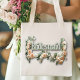 Joli sac pour vos demoiselles d'honneur. Jolies roses roses et texte Demoiselle d'honneur sur un fond vert clair. Ajoutez les noms de vos copines ou le texte que vous voulez.