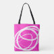 Ce sac fourre-tout boho cool présente un design simple mais attrayant, composé par une ligne blanche qui fait un dessin différent de chaque côté : l'un est très fin en forme circulaire et l'autre est plus épais, générant un triangle expressif irrégulier. L'arrière - plan est fuchsia.