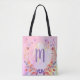 Élégant Pink Floral Monogramme Design sac Idéal pour le cadeau d’un enseignant, les demoiselles d’honneur ou achetez-vous un sac à utiliser pour vos courses quotidiennes. (Remplacer les sacs en plastique)