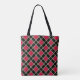 Élégant motif diamant en Sac fourre-tout à damiers noir et rouge. Ce design a des fils sépia et une touche rustique avec une mosaïque diamant presque invisible sur les bandes noires.