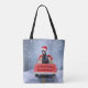 Tote Bag Doberman Chien en neige assis sur un camion de Noë