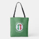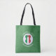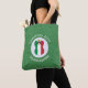 Un sac fourre-tout d'épaule personnalisé pour Noël montre un ange habillé dans le drapeau italien. L'ange se trouve à l'intérieur d'un cercle fractal blanc de carrés croulants avec un arrière - plan de carrés verdoyants. Ajoutez votre propre texte, si vous le souhaitez. Personnalisez avec un nom et une année. Un cadeau amusant pour les voyageurs. Partagez votre patrimoine italien pendant la période des fêtes.
