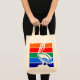 Sac fourre-tout avec un design avec le drapeau de Saint-Pétersbourg, Floride. Un drapeau à rayures orange, rouge, vert, bleu et bleu marine avec un symbole pélican blanc