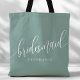 Tote Bag Dusty Turquoise Bridesmaid Script moderne