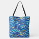 Tote Bag École de poisson, bleu foncé, blanc et turquoise