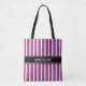Elégant bleu rouge blanc rayures verticales Sac fourre-tout. Les rayures bleues ont une étoile blanche motif. Le texte peut être personnalisé. Beaux Sacs fourre-tout de mode femmes. Sacs de shopping. Sacs d'alimentation.