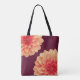 Un élégant sac fourre-tout bordeaux. Décoré de belles fleurs de dahlia orange. Personnalisez avec votre monogramme / initial.