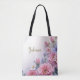 Tote Bag Elegant Floral Design in Pink Blue White Bloom