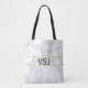 Ce sac fourre-tout est décoré d'un motif de texture en marbre blanc imitation. Au milieu du sac, vous pouvez le personnaliser avec votre monogramme en noir. Une ligne d'or fausse (pas de feuille) est au-dessus et au-dessous des initiales.