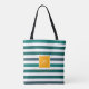 Tote Bag Élégant Monogramme blanc rayé Turquoise