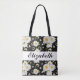Tote Bag Élégant Monogramme noir et blanc Motif de margueri