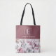 Tote Bag Élégant Monogramme rose et violet flore botanique