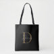 Tote Bag Élégant monogramme script noir minuit doré moussu