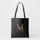 Sac fourre-tout personnalisé avec monogramme élégant, simple et moderne, avec initiales en or et noir, motif de nom personnalisé avec écriture manuscrite. Ce design présente votre prénom dans une jolie typographie à queue avec monogramme initial en or et blanc sur fond noir. Cadeau féminin idéal pour un anniversaire, un mariage, Noël, une fête des 16 ans, une douche de mariée, une soirée entre filles ou pour un diplôme, et c'est pour la fille qui aime les choses minimalistes et épurées.