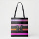 Tote Bag Élégant noir rayé rose rayé nuances Bow