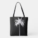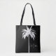 Un élégant palmier blanc fait partie de la canopée sur votre nom ou le nom de votre famille. Design élégant Tropical noir et blanc. Le palmier est sur un arrière - plan de noir.