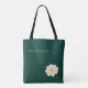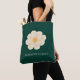 Discover timeless elegance with this **white camellia tote bag** on deep green canvas. The delicate camellia flower blooms gracefully against rich forest green, blending botanical artistry with everyday sophistication.