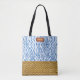 Tote Bag Elégante aquarelle bleue apparence de rotin géomét