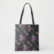 Tote Bag Elégante Fleurs violettes Art sur Noir
