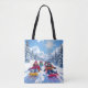 Sacs fourre-tout de Noël adorables avec une jolie illustration d'une journée d'hiver avec des enfants qui couchent joyeusement ensemble sur une colline !