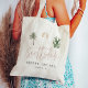 Accueillez vos amies pour votre week-end d'enterrement de vie de jeune fille dans le désert avec ces adorables sacs cabas personnalisés. Le design présente des illustrations d'un cactus aquarelle, d'un palmier et d'un verre à champagne, avec votre destination en dessous (illustrée avec Scottsdale) en lettrage manuscrit. Deux champs de texte personnalisés supplémentaires en dessous offrent un espace pour votre choix de texte ; illustré avec "before the veil" et l'année en chiffres romains.